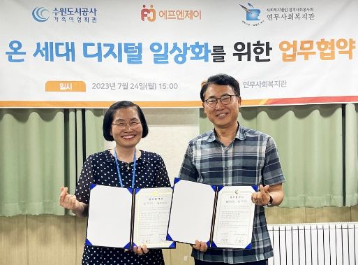 (중부시사신문) 수원도시공사가 운영하는 수원시가족여성회관은 24일 연무사회복지관과 디지털로 맞잡고 찾아가는 키오스크 사업과 지속 가능한 사회공헌 및 연대활동을 위해 업무협약을 했다고 밝혔다.