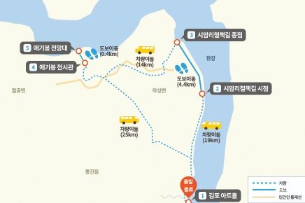 ‘DMZ 평화의 길 테마노선 김포코스’는 사우동 김포아트홀에서 집결해 시암리 철책길까지 버스로 이동한 후 철책길을 따라 4.4km 구간을 도보로 걷다가, 또다시 버스에 올라 애기봉평화생태공원까지 이동하는 코스로, 다섯 시간 정도 소요된다.