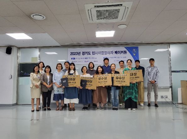 (중부시사신문) 경기환경에너지진흥원이 창의적이고 혁신적인 아이디어 발굴을 위해 진행한 ‘2023년 경기도 업사이클플라자 메이커톤’ 결선 심사에서 업사이클 원단을 활용하여 제로웨이스트 피크닉 용품을 제작한 ‘주식회사 재재’팀이 대상을 차지했다.
