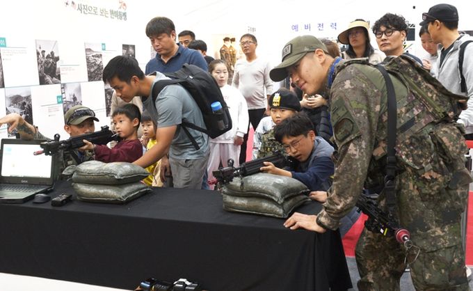 또 보조공연장에서는 오전 11시, 육군 특별공연 버스킹을 비롯해 오케스트라, 클래식, 전통무용, 오카리나, 합창, 국악, 댄스공연이 진행됐고, 오후 3시부터는 군가 부르고, 인생샷 찍고, 경품도 받는 스페셜 이벤트인 ‘전부 군가 잘함 육군 군가 노래방’이 이어졌다.