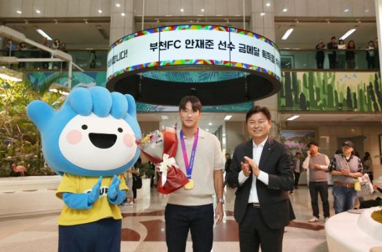 (중부시사신문) 부천시는 11일 제19회 항저우 아시안게임 남자축구 국가대표팀에서 활약하고, 금메달을 획득한 부천FC1995 소속 안재준 선수에 대한 환영식을 개최했다.