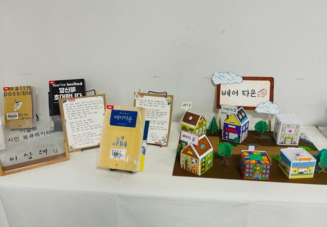 이외에도 전시 책상에는 베어타운을 모형이 설치돼있으며, ‘그들이 사는 마을’ 등 여러 권의 주제 연관도서와 표지도 한데 모아져 다양한 전시작품을 볼 수 있다.