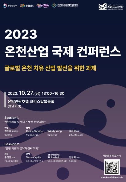 이번 ‘2023 대한민국 온천산업박람회’의 일환인 이번 국제 컨퍼런스에는 국내 전문가뿐만 아니라 독일, 체코, 헝가리, 대만, 일본 등 온천으로 유명한 국외 전문가가 초빙돼, 세계 온천산업을 돌아보고 대한민국 온천산업 발전 방안을 모색한다.
