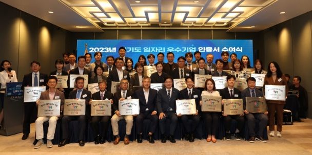 (중부시사신문) 경기도는 26일 라마다플라자 수원호텔 오키드홀에서 염태영 경기도 경제부지사, 손일권 경기도일자리재단 서부사업본부장, 일자리 우수기업 인증기업 대표 등 관계자 80여 명이 참석한 가운데 ‘2023년 경기도 일자리 우수기업 인증서 수여식’을 열고 60개 우수기업에 인증서를 수여했다.
