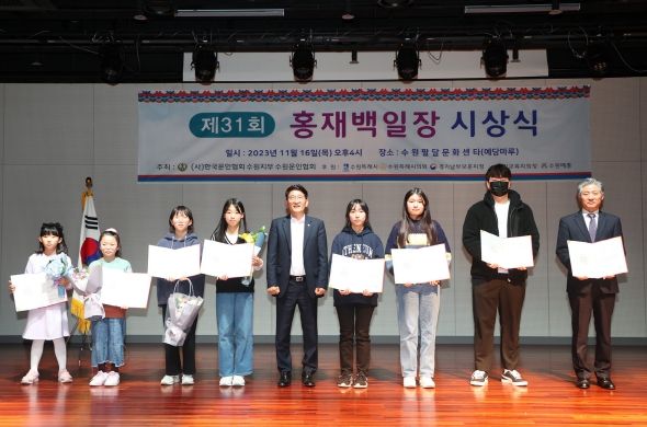 (중부시사신문) 수원특례시의회는 16일 (사)수원문인협회 주최로 팔달문화센터 대강당에서 개최된 제31회 홍재백일장 시상식에 참석하여 시상과 함께 수상자들에 대한 격려를 전했다.