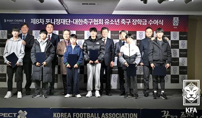 (중부시사신문) 대한축구협회는 12일 오후 서울 종로구 축구회관에서 ‘제8차 포니정재단-대한축구협회 장학금 수여식’을 개최하고, 남녀 중학교 선수 60명에게 장학금을 지급했다.