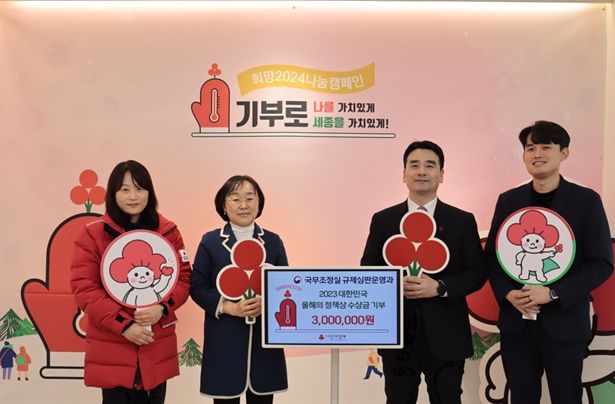 (중부시사신문) 국무조정실 규제심판운영과에서 ‘2023대한민국 올해의 정책상’을 수상하고 받은 상금을 어려운 이웃을 위해 기부하여 눈길을 끌고 있다.