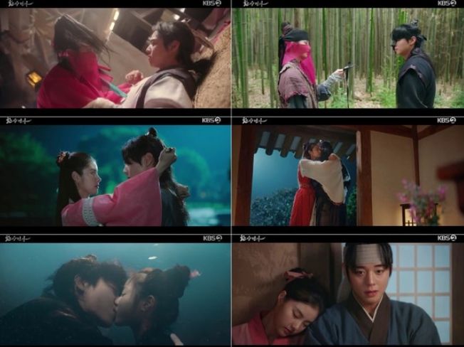 그러나 연월이 왕을 시해했다는 누명을 쓰고 감옥에 갇히게 되자 사조 현은 악희에게 몸을 내주며 그녀를 구해 달라고 청했고, 사조 융(황희 분)의 살수들을 피해 달아나던 중 강물에 뛰어든 두 사람은 조심스레 입을 맞추며 오묘한 로맨스를 그려갔다.