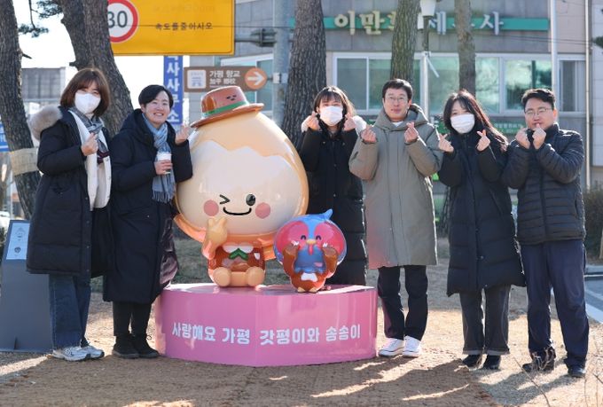지난해 말 정체성과 상징성을 반영해 새롭게 변경된 캐릭터로 가평 잣과 군 조(鳥)인 꿩을 표현한 ‘갓평이와 송송이’는 주민 선호도 조사 결과 참여 주민 60%가 호감을 나타낸 가운데 2002년부터 사용해 오던 기존 ‘잣 돌이’ 상징물은 21년 만에 역사 속으로 사라지게 됐다.