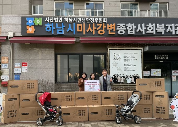 (중부시사신문) ㈜SH한성소방은 지역사회 내 취약계층 및 한부모 가정에 전달해 달라며 하남시미사강변종합사회복지관에 유모차 20대를 전달했다.