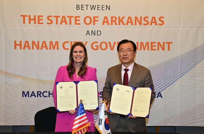 (중부시사신문) 하남시는 한국을 방문한 미국 아칸소州 (주지사 Sarah Huckabee Sanders) 경제사절단과 8일 삼성동 그랜드 인터콘티넨탈 호텔에서 양 지역 산업교류 확대 등 경제협력을 위한 약정을 체결했다고 밝혔다.