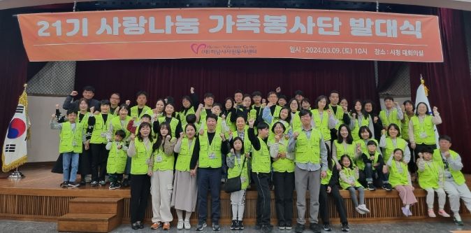 (중부시사신문) (재)하남시자원봉사센터는 지난 3월 9일 가족이 함께 지역사회 문제해결 자원봉사활동에 참여함으로써 공익적 이웃사랑을 실천할 수 있는 기회를 제공하고자 20가족 70여명이 참석한 가운데 ‘21기 사랑 나눔 가족봉사단 발대식’을 가졌다.