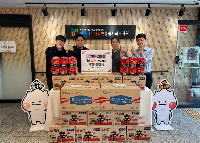 이날 전달식에는 SH수협은행 김민수 지점장과 하남시미사강변종합사회복지관 조혜연 관장이 참석한 가운데 진행됐고, 전달된 라면과 미역은 취약계층 중 결식이 우려되고, 식료품 지원이 필요한 대상자들을 중심으로 지원될 예정이다.