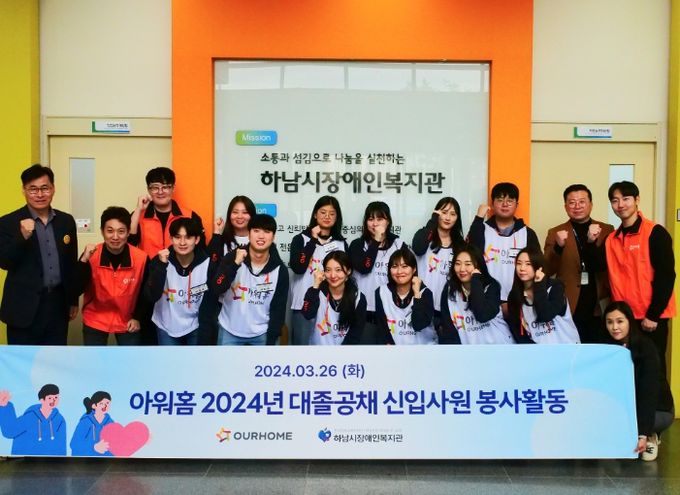 (중부시사신문) 지난 3월 26일 하남시장애인복지관에 아워홈신입직원들이 방문하여 봉사활동을 진행했다. 이번 봉사는 2024년 아워홈 대졸공채 신입직원 연수 프로그램의 일환으로 하남시장애인복지관의 봉사활동을 통하여 장애인에 대한 이해를 높이고 지역사회의 복지증진에 기여함으로써 직원들의 직무능력 기술 향상과 사회에 대한 책임감을 고취시키고자 계획 됐다고 한다. 신입직원들은 장애인식개선교육을 진행한 후 성인발달장애인 체육프로그램 지원, 장애아동 학습지원, 복지관 환경정리 등 조별로 다양한 영역으로 나누어 활동을 진행했다.