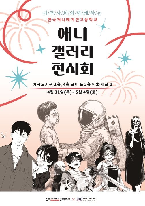 하남시미사도서관과 한국애니메이션고등학교는 2022년에 맺은 업무 협약을 기반으로 제3회 지역사회와 함께하는 ‘애니갤러리’를 진행한다. 만화창작과와 애니메이션과 학생들이 1년간 학과 활동으로 제작한 작품을 미사도서관 1층, 4층 로비와 3층 만화자료실에 전시한다.
