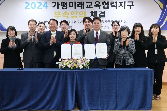 앞서 군은 지난 2월 가평교육지원청과 상호존중과 신뢰를 바탕으로 학생들이 행복할 수 있는 교육환경을 만들어 나가기 위해 미래교육협력 지구 부속 합의체결을 가졌다.