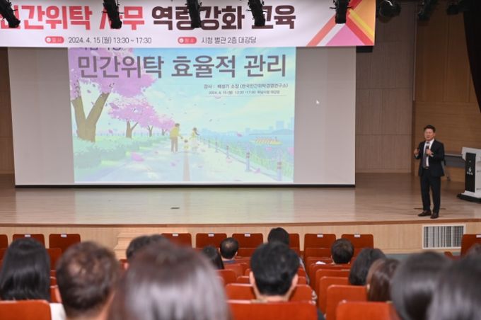 16일 하남시에 따르면 시는 15일 시청 별관 2층 대강당에서 배성기 한국민간위탁경영연구소 소장을 초빙해 ‘민간위탁 효율적 관리’를 주제로 민간위탁 사무 역량 강화 교육을 진행했다.