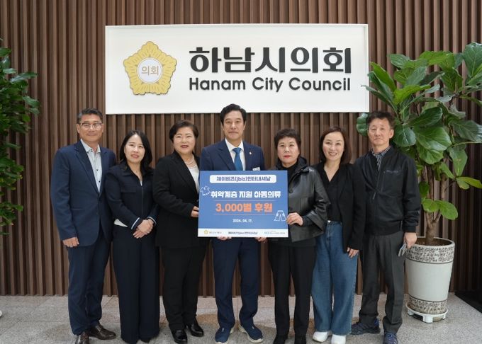 하남시의회는 17일 남양주시 다산동에 소재한 제이비즈(jbiz)인터내셔날(대표 정의숙)로부터 아동의류 3천벌을 후원받았다고 밝혔다.