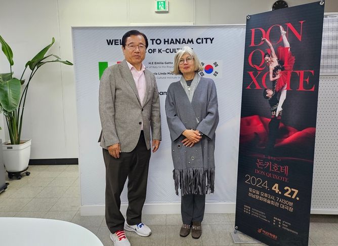 이번 차담회는 올해 한국-이탈리아 수교 140주년을 기념해 열리는 발레 ‘돈키호테’ 공연 관람을 위해 하남문화예술회관을 방문하는 에밀리아 가토 주한이탈리아 대사와 문화·관광·예술 교류 확대를 논의하기 위해 마련됐다.