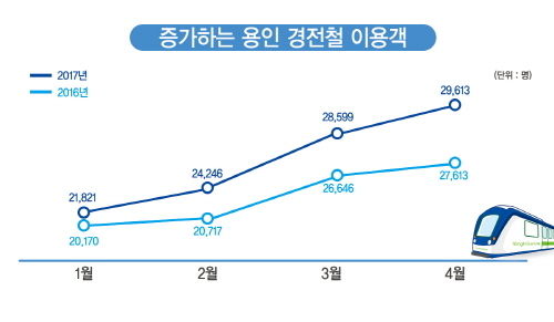 이처럼 경전철 이용객이 늘어난 것은 지역 내 유동인구가 늘고 있는데다 각종 안전‧편의시설을 확충했기 때문으로 분석된다.