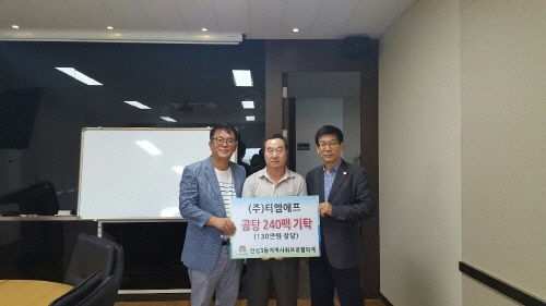 안성3동지역사회보장협의체(공동위원장 김부식, 민간위원장 이문주)는 5월 18일 일죽면 소재 ㈜티엠에프(대표이사 이재인)로부터 복지사각지대에 있는 저소득가정에게 나누어 줄 곰탕 360인분을 기탁받았다.