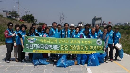 이천시 자율방재단(단장 김남성)은 17일 청미천 일원에서 30여명의 회원이 참여한 가운데 쓰레기 수거 등 환경정화 활동을 실시했다.
