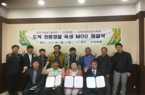 광주시농업기술센터(소장 박수복)와 도척농협(조합장 신정교), 도척 친환경쌀작목회(회장 장효택)는 지난 17일 도척농협에서 “친환경 쌀 육성과 발전을 위한 상호협력·교류 업무협약”을 채결했다.