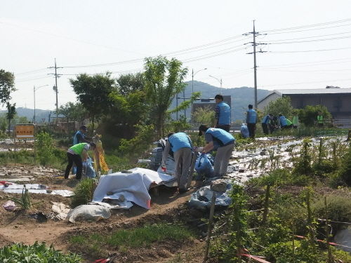 이날 용인시 환경과 직원과 한국농어촌공사 평택지사 직원들은 저수지 주변에 버려진 쓰레기 2.5톤을 수거했다.