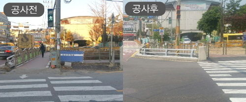 이에 구는 공세교 가각부의 직각 모서리를 기존 보도 폭을 줄여 부드럽게 완화하고 횡단보도 등을 이설해 차량통행이 원활하도록 개선했다.
