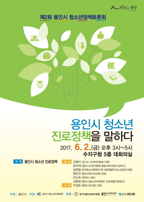 용인시청소년미래재단(이사장 정찬민)에서 오는 6월 2일 수지구청 대회의실에서 제2회 용인시청소년정책토론회를 개최한다.