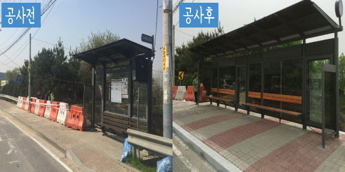이에 시는 기존 정류장 뒤쪽 국유지에 옹벽을 쌓아 폭 1.5m공간을 추가로 확보하고 4m 길이의 버스정류장을 9m로 확장해 학생들이 안전하게 대기할 수 있도록 했다.