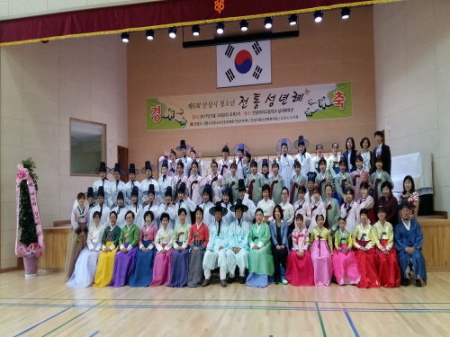 이날 행사에는 안성여자고등학교 임종수 교장선생님을 큰손님으로 모시고 전통예법에 따라 전통 성년례의식 재현행사로 진행하였다.