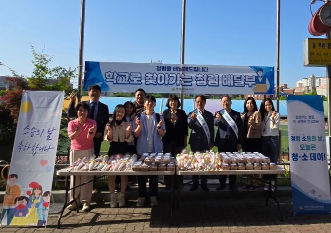 이날 행사는 ‘청렴을 배달해드립니다! 학교로 찾아가는 청렴 배달부’라는 주제를 가지고, 교육장이 비룡초등학교 본관 입구에서 출근하는 교직원에게 카네이션과 간식으로 구성된 청렴 꾸러미를 전달하며 스승의 날을 앞두고 감사의 마음을 전하고, 청렴을 실천하는 교직원을 응원하며 자유로운 분위기 속에서 의견을 청취하고 소통하는 시간을 가졌다.