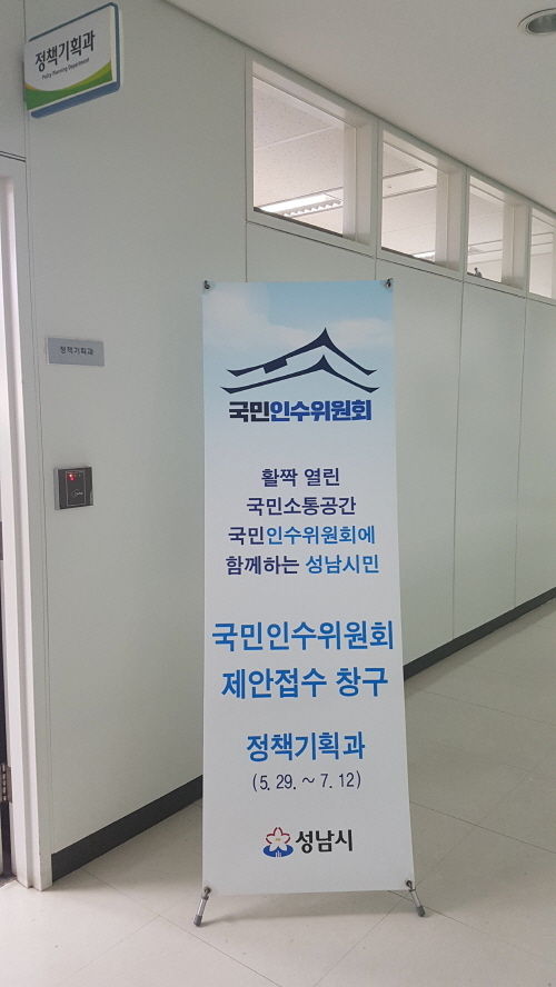 제안 접수창구는 성남시청 6층 정책기획과 사무실에 마련됐다.