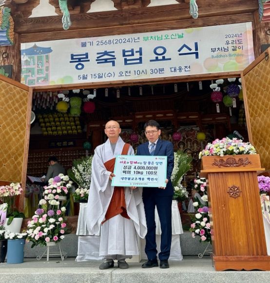 (중부시사신문) 가평군 상면에 위치한 대한불교조계종 백련사는 불기 2568년(서기 2024년) 부처님오신날을 맞아 백련사에서 봉축법요식을 진행하며 성금 400만원과 백미 100포(10kg들이)를 상면행정복지센터에 기탁했다.