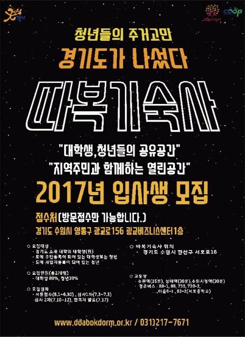 대학생, 청년들의 주택 고민 해결과 행복한 일상을 위한 경기도의 새로운 대안, 따복기숙사가 오랜 준비 끝에 드디어 입사생을 모집한다.