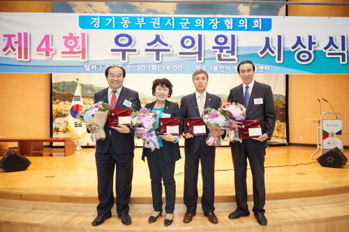 경기동부권시·군의장협의회 제90차 정례회의가 30일 용인시 농업기술센터 소회의실에서 용인시의회(의장 김중식)의 주관으로 개최됐으며, 의정활동 우수의원을 선정해 19명의 경기동부권시·군 의원들에게 시상을 하는 제4회 의정활동 우수의원 시상식도 진행됐다.