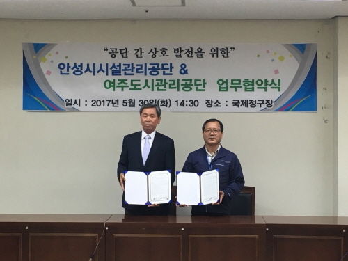 안성시시설관리공단(이사장 박상기)은 여주도시관리공단과 지난30일 국제정구장 3층 회의실에서 신규사업개발, 홍보, 고객서비스 등 경영분야의 교류를 통한 상호협력 및 발전방향을 모색하기 위해 업무협약을 체결했다고 밝혔다.