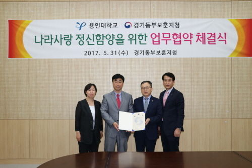 경기동부보훈지청(지청장 정해주)은 5월 31일 수요일 경기동부보훈지청 회의실에서 용인대학교 무도대학(학장 류병관)과 나라사랑 정신 함양을 위한 업무협약을 체결하였다.