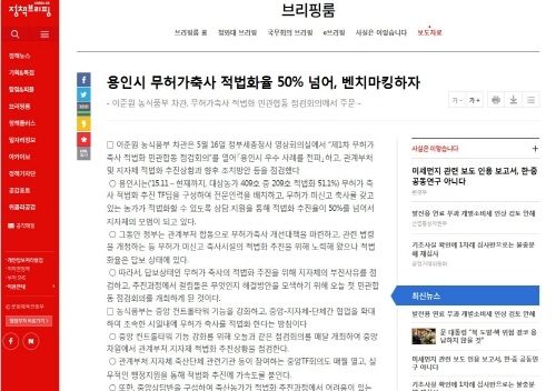 환경오염을 막기 위해 전국적으로 진행되고 있는 무허가 축사 적법화 완료율이 용인시가 전국 최고를 기록, 농림축산식품부로부터 모범사례로 꼽혔다.