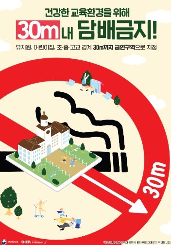 가평군보건소에 따르면 국민건강증진법 개정으로 오는 8월 17일부터 금연구역이 어린이집과 유치원 주변은 기존 10m 이내에서 30m 이내로 확대된다. 또 초·중·고등학교에도 주변 30m 이내에 금연구역이 새롭게 적용된다.
