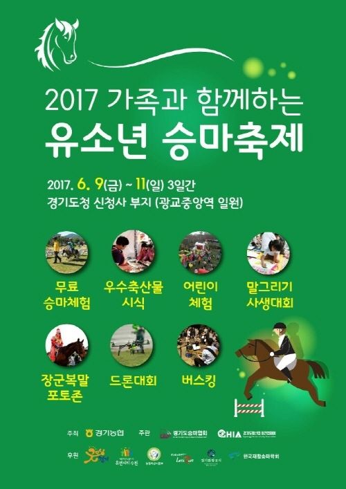 경기도는 오는 9일부터 11일까지 사흘간 수원 영통구 소재 광교 경기도청 신청사 부지에서 ‘2017년도 가족과 함께하는 유소년 승마축제’가 개최된다고 5일 밝혔다.