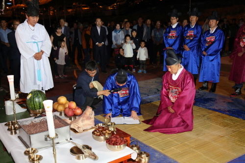 기우제 행사에는 영신관을 맡은 김종석 농민회장, 초헌관을 맡은 황은성 안성시장, 축관을 맡은 권혁진 시의회의장, 아헌관을 맡은 김학용 국회의원, 종헌관을 맡은 윤원희 농업경영인회장, 송신관을 맡은 신현태 농촌지도자회장, 소지례를 맡은 김길수 농협시지부장이 천제의례 순에 따라 안성시 가뭄극복 합동 기우제를 엄숙히 거행했다.