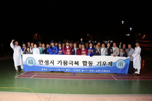안성시는 연일 계속되는 가뭄으로 농민들이 어려움을 겪고 있는 가운데 안성지역 농업인단체들이 절박한 마음을 담아 지난 5일 밤 9시에 안성천변에서 가뭄극복 합동 기우제를 올렸다.