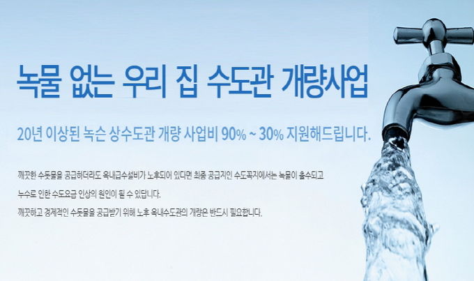 대상 가구는 세부적으로 ▲준공 후 20년 이상 경과된 공동주택·단독주택·다가구주택 ▲옥내수도관이 아연도강관인 노후주택 등이다.