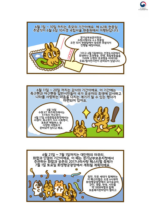 6월의 웹툰은 호국보훈의달에 대한 주제로 약 10컷분량의 카툰으로 구성되어 있으며, 호국보훈의 달의 유래와 의의, 그리고 추모의 마음을 전하는 메시지로 이어진다.