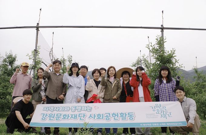 (중부시사신문) 강원문화재단은 5월 24일, ESG경영 실천 및 사회공헌활동의 하나로 춘천시 고은리 과수원을 찾아 노사 합동 농번기 농촌일손돕기 활동을 진행했다.