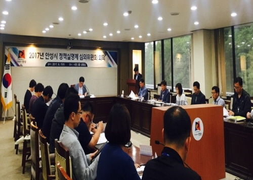 안성시는 지난 7일 시청 상황실에서 전문가, 주민대표 등으로 구성된 심의위원과 사업별 담당공무원이 참여한 가운데 정책실명제 심의위원회 회의를 개최했다.