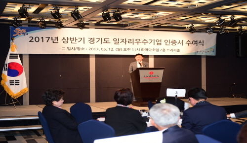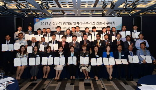 경기도와 경기도일자리재단은 12일 2017년도 상반기 일자리 우수기업으로 선정된 37개 기업에게 인증서를 수여했다.