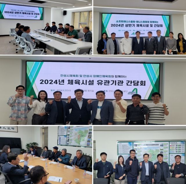 (중부시사신문) 안성시시설관리공단 이사장 이정찬은 2024년 4월 17일부터 2024년 5월 22일까지 총 6차례에 걸쳐 체육시설 종목별 및 유관기관 간담회가 개최했다고 밝혔다. 간담회에는 안성시체육회, 안성시 장애인체육회를 시작으로 총 13곳의 생활체육협회와 2곳의 유관기관이 참여했다.